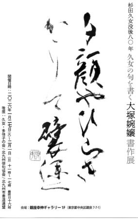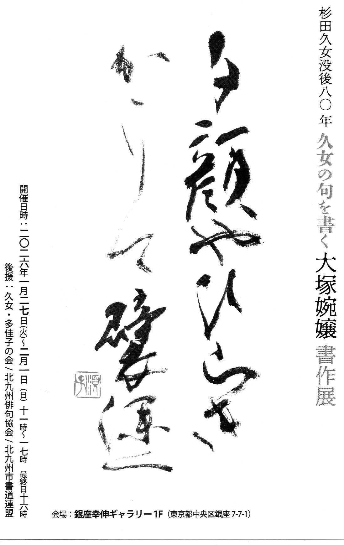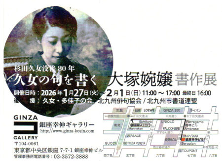 大日10、博士課程前期修了の大塚順子(旧姓・木下)さんが、銀座のギャラリーで書作展を開催されます。